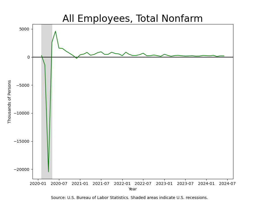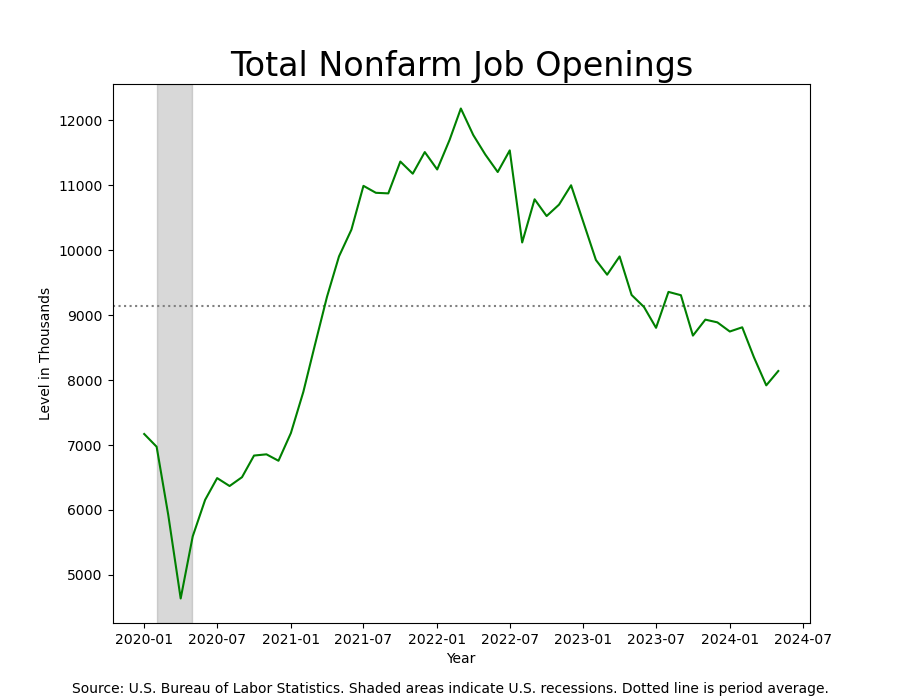 Given that prices are heading in the right direction, and unemployment is not, it seems to us that the time is nigh for the Fed to begin to reduce the policy rate to head off rapid labor market softening at the pass. Financial conditions have relaxed somewhat since the spring but remain far too tight to support continued expansion as demonstrated by the reduction of activity in the Long Economy. Sooner or later, what happens in the Long Economy dominates what happens in the Short Economy, and that point is rapidly approaching. The Fed will likely wait until September to cut rates, but it is unclear whether that will provide enough time to arrest the cascade of negative effects that a too-loose labor market engenders.