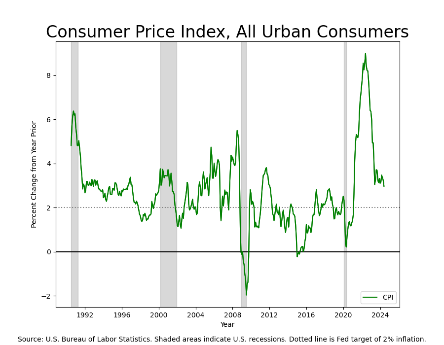 The inflation rate as measured by the not-fatally-flawed Consumer Price Index (CPI) fell again in June, registering 3.0% Year-over-Year (YoY) compared with 3.3% YoY the month prior. The rate has fallen for the third month in a row, confirming a downward trend.