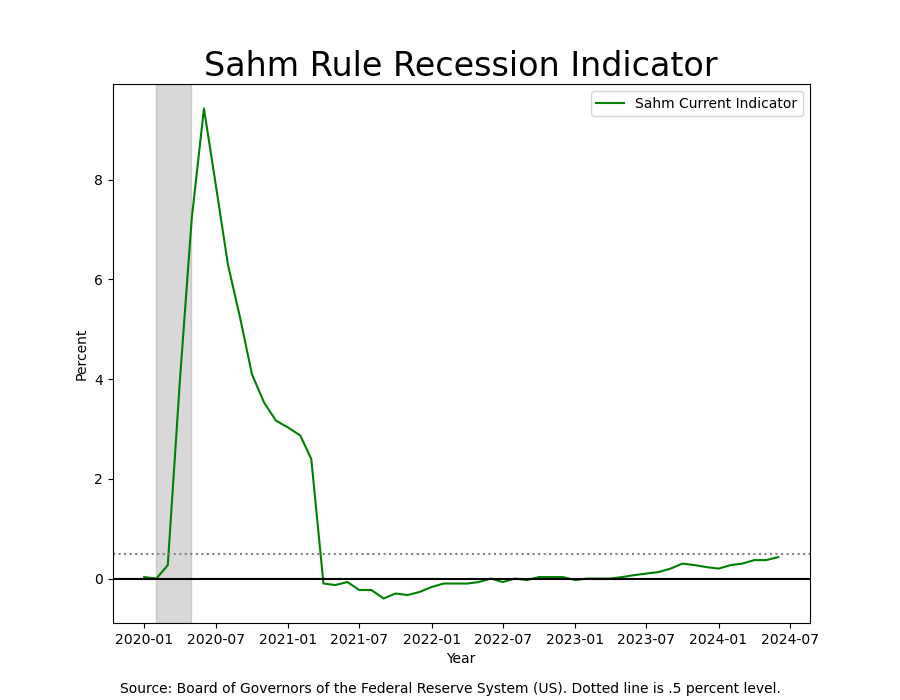 Former Federal Reserve economist Claudia Sahm is credited with identifying an empirical regularity (not a law, but an observed property) that has an impressive track record in identifying inflection points in the economy. The resulting regularity is referred to as the ‘Sahm Rule’, and when it is observed, the economy is likely already in recession. If the Unemployment Rate were to increase a mere .1%, it would exceed the critical threshold and signal that recession has already begun.