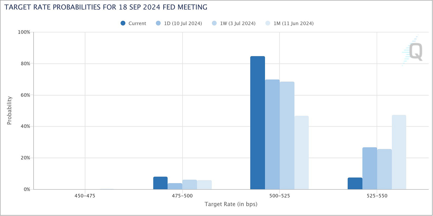 Futures pricing suggests a better than 90% chance of an interest rate cut by or at the Federal Reserve’s Open Market Committee meeting in September. Those odds increase to 97% by November, at which time there’s also estimated to be a 50/50 chance of two rate cuts. Odds are 50/50 that there will be a third rate cut by December.
